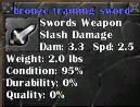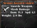 購入前と後。双方のダメージは、3.3と11.3だ。購入前の武器のほうが、やや攻撃速度が速いとはいえ、性能差は月とすっぽんである。購入後の武器は、画像が店に並んでいたときのモノなのでクオリティーの値が見えないけど、初期装備の剣はクオリティーが0%なのも痛い。