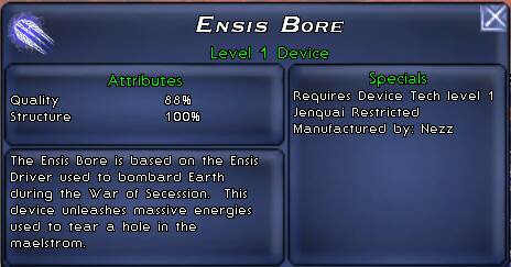 Maelstromに穴をあけるための物だと明記されている。そしてJenquaiには使えない。JenquaiはMaelstromに少なくともTarsis宙域からは入れないのだろうか。